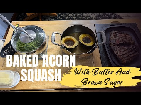 Cut squash in half, clean out seeds and add butter and brown sugar to each half.